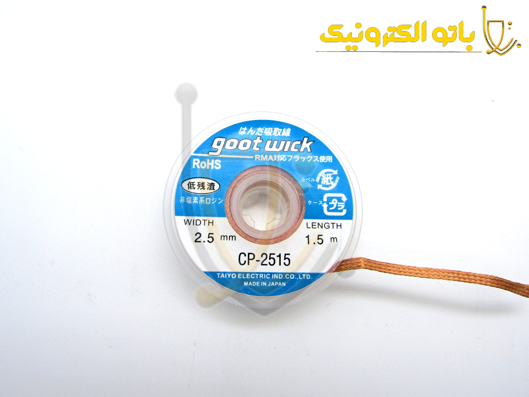 سیم قلعکش(غیراصل) Gootwick 2515 – فتیله قلعگیر Goot عرض 2.5 میلیمتر، طول 1.5 متر | باتو الکترونیک