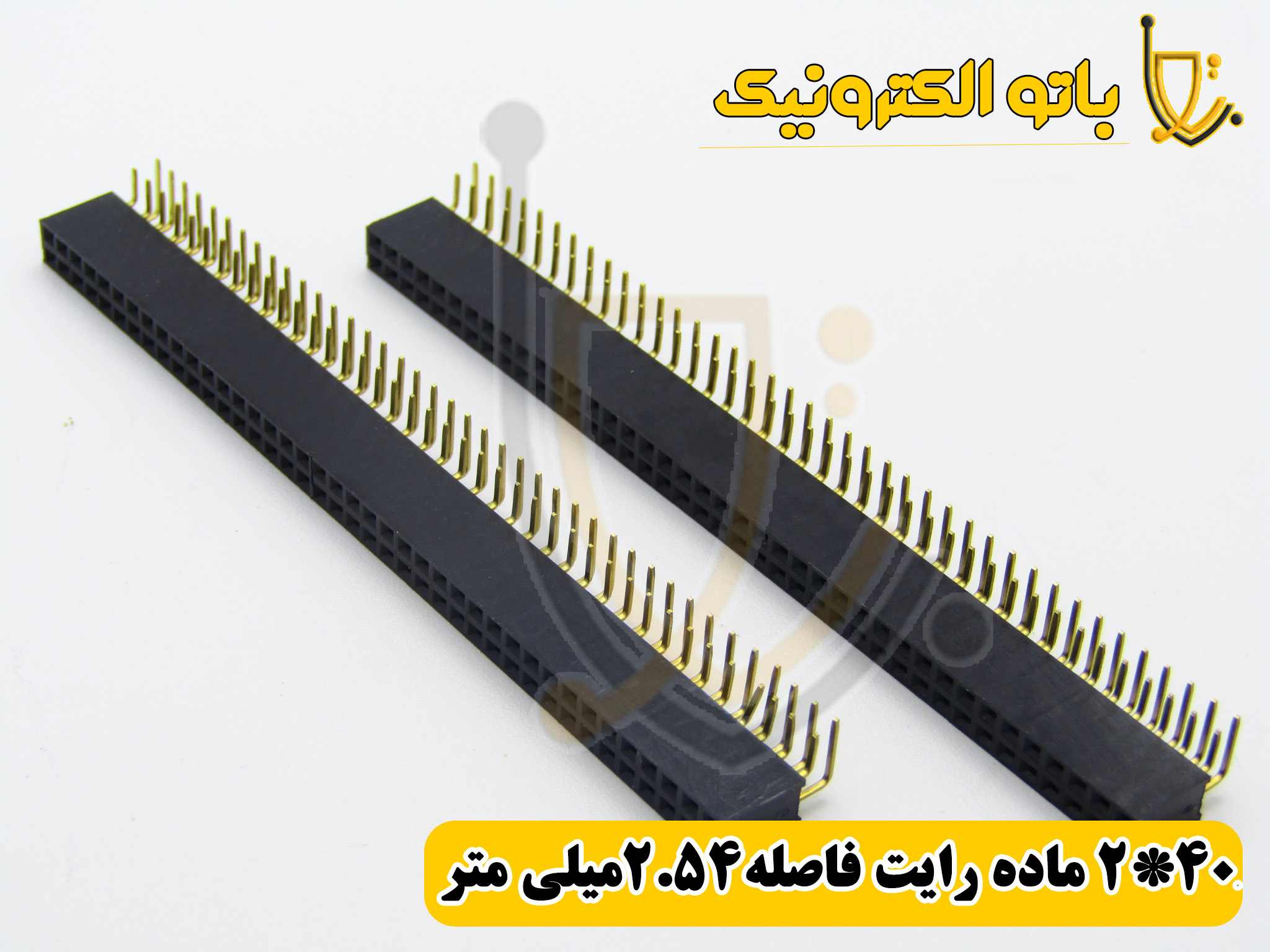 پین هدر ماده، پین هدر رایت، پین هدر 2x40، female header، کانکتور 90 درجه، پین هدر مادگی 2.54، کانکتور افقی-پین هدر ماده رایت 2×40 میلیمتر، پین هدر مادگی زاویهدار دوبل، خرید پین هدر افقی 2.54 میلیمتر، کانکتور مادگی 90 درجه برای برد، پین هدر 2x40 افقی برای آردوینو، پین هدر مادگی دو ردیفه زاویهدار، فروش پین هدر رایت ماده باتوالکترونیک