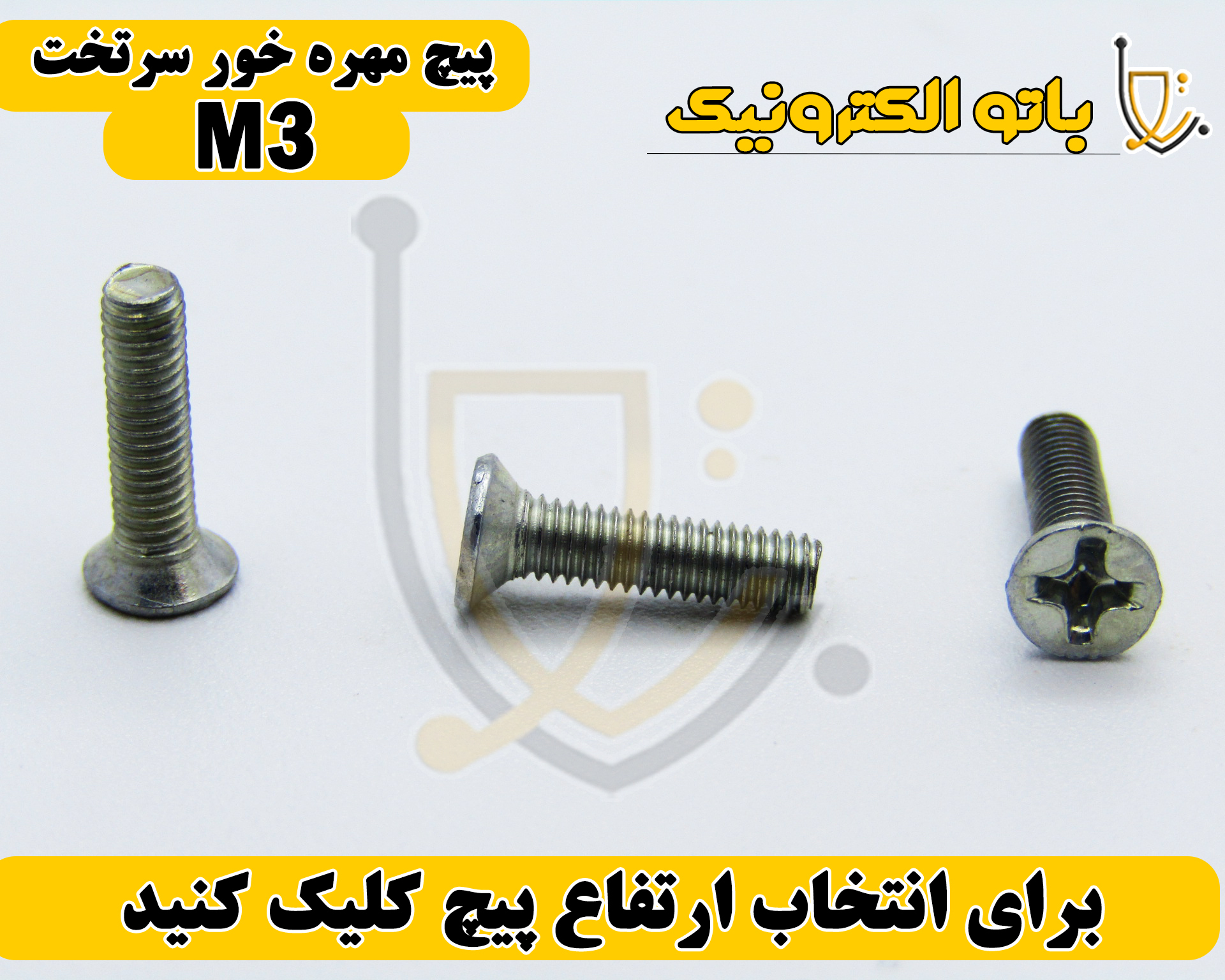 پیچ مهرهخور سرتخت قطر ۳ میلیمتر – اتصال یکنواخت و دقیق | ارتفاع ۵ تا ۲۰ میلیمتر | باتو الکترونیک