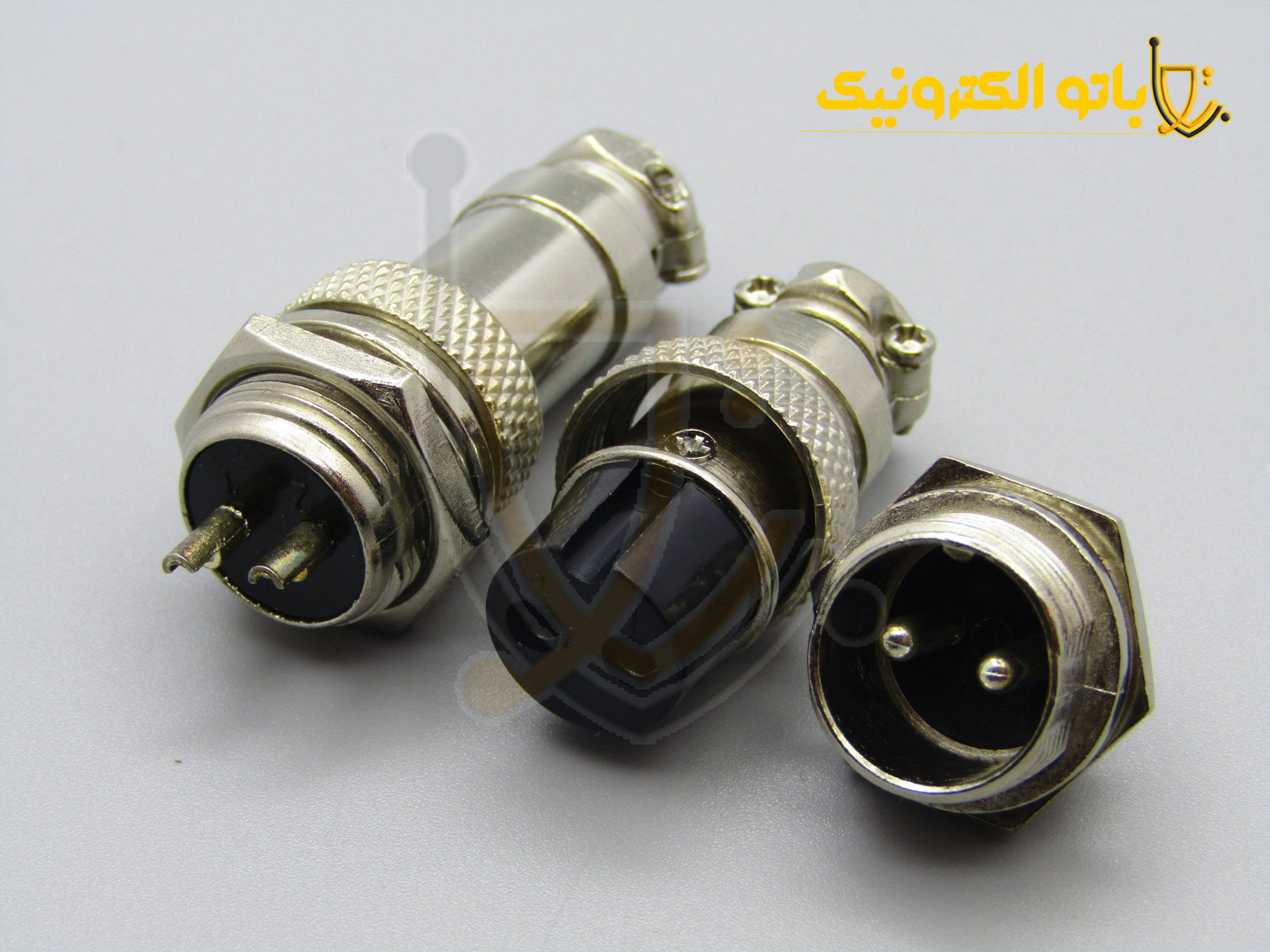 فیش نظامی قطر 16 دو پین |GX-16| کانکتور فلزی 2 پین نری و مادگی مقاوم|خرید با کیفیت از باتوالکترونیک