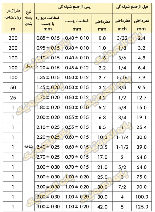 جدول کامل سایزهای محصول، برای انتخاب سریع و دقیق، پایین همین متن قرار دارد تا بتوانید بر اساس نیاز پروژه، مناسبترین قطر را برگزینید و به راحتی خرید خود را نهایی کنید.