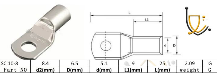 کابلشو مسی 108 قلعاندود | کابلشو کرمپ 10mmباسوراخ8mm | باتو الکترونیک