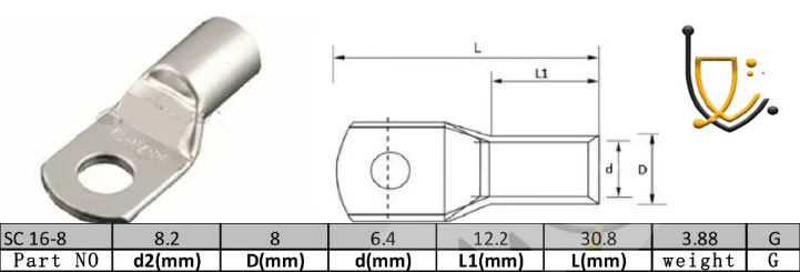 کابلشو مسی 168 قلعاندود | کابلشو کرمپ 16mmباسوراخ 8mm | باتو الکترونیک