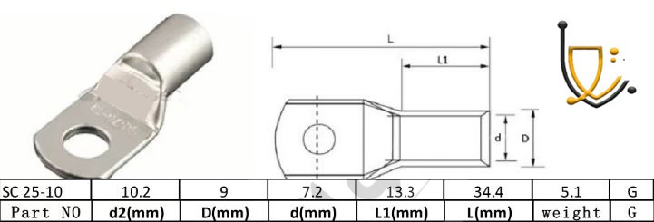 کابلشو مسی 2510 قلعاندود | کابلشو کرمپ 25mmباسوراخ 10mm | باتو الکترونیک