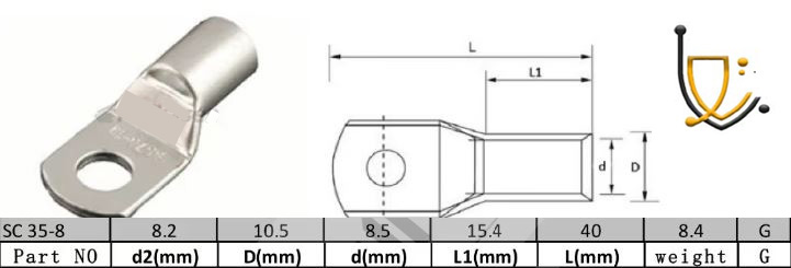 کابلشو مسی قلعاندود مدل 358 | کابلشو کرمپ 35mmباسوراخ 8mm | باتو الکترونیک